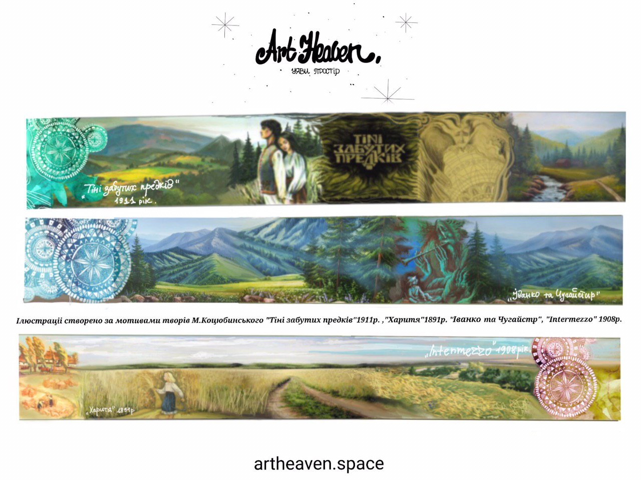 На пано зображені природні пейзажі регіонів України та окремі фрагменти творів Михайла Коцюбинського. Над муралом працювало троє художників. Розпис виконано змішаними техніками, акриловими та аерозольними фарбами.
